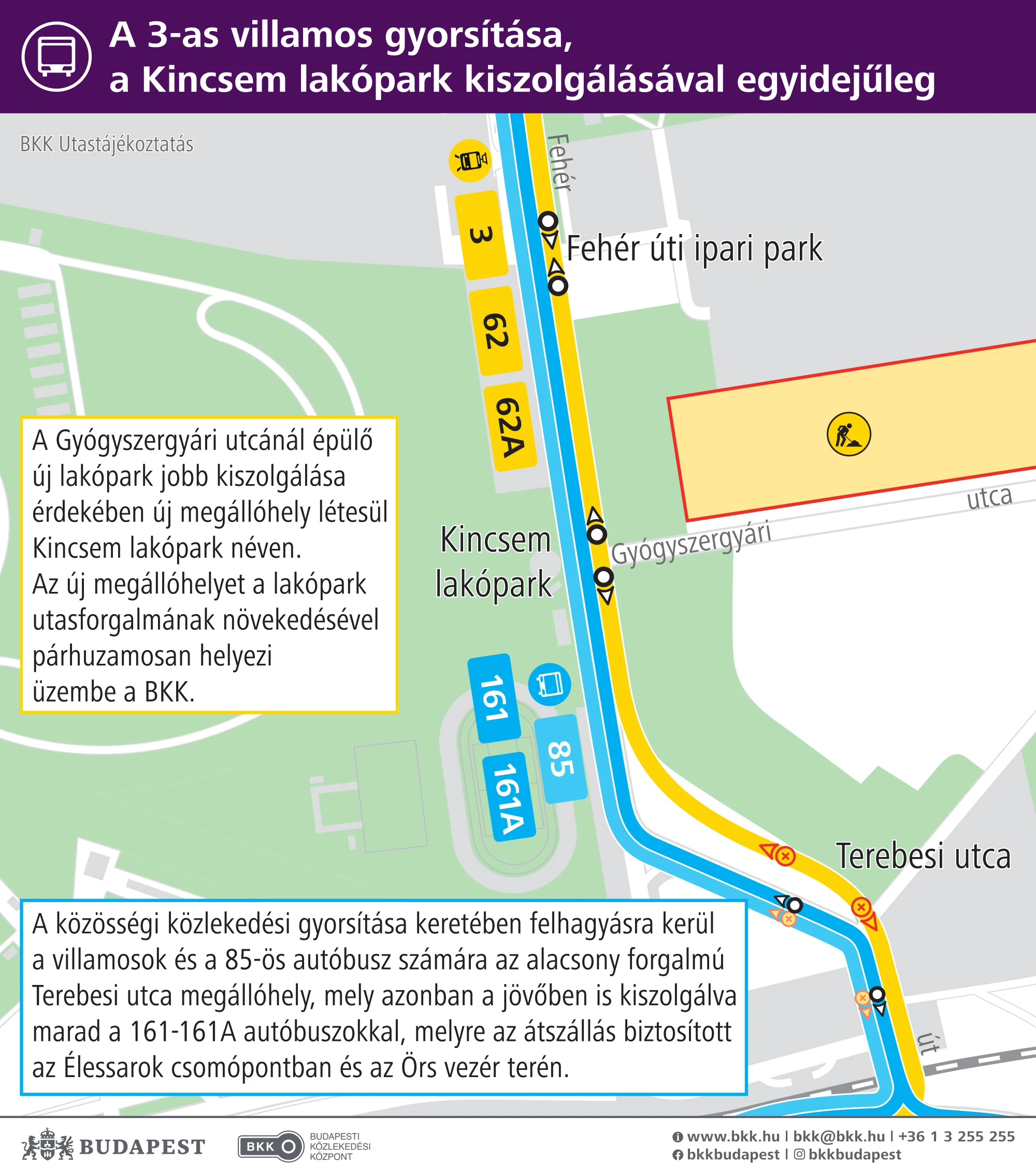 - a 3-as, a 62-es és 62A villamos, valamint a 85-ös busz a jövőben nem állna meg az alacsony forgalmú Terebesi utca megállóhelyen, azonban az továbbra is elérhető maradna a 161-es, a 161A autóbusszal és az éjszakai járatokkal;