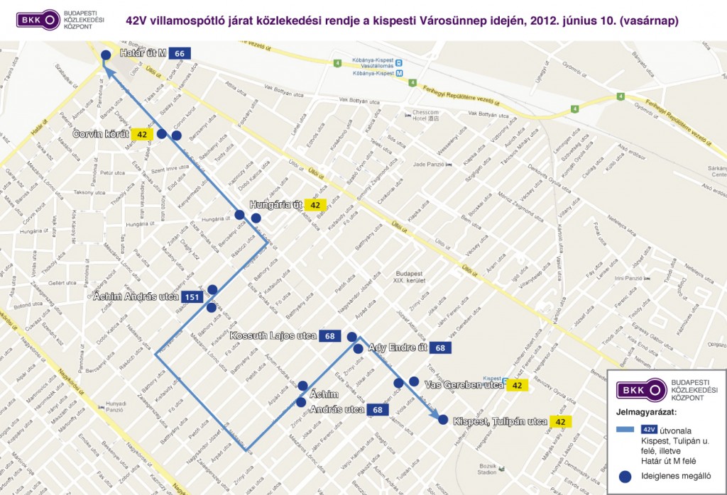 • Kispest, Tulipán utca (felszállóhely a 42-es villamos peronján)