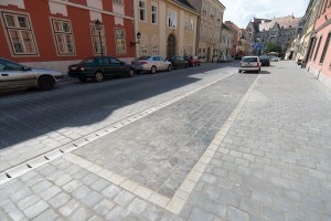 Az útépítéssel egyidejűleg az I. Kerületi Önkormányzat a járdafelületeket is felújította.