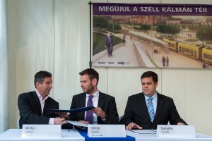 Vitézy Dávid, a BKK vezérigazgatója, valamint a kivitelező konzorcium nevében Szalados László, a KÉSZ Építő és Szerelő Zrt., és Wicha József, a WIS Holding Zrt. vezérigazgatója írták alá a Széll Kálmán tér rekonstrukciójáról szóló kivitelezői szerződést november 24-én. "Minden terv, építési engedély rendelkezésre áll, a Kormány, a Főváros és az EU az összes szükséges forrást biztosította, és immár a kivitelezői szerződést is aláírtuk, minden garancia megvan ahhoz tehát, hogy több mint két évtized után végre elkezdődjön a munka és teljes körűen megvalósuljon a Széll Kálmán tér újjáépítése" – mondta el Vitézy Dávid. A vezérigazgató hozzátette: sikerült a nyertes konzorciummal egy olyan megállapodást kötni, hogy a villamosvágányok átépítése – amely európai uniós pénzből finanszírozott, éppen ezért 2015 végéig befejezendő része a munkának – időben befejeződik, így az uniós forrásokat az utolsó fillérig fel tudjuk majd használni.