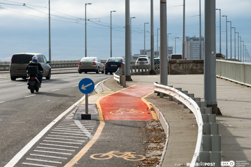 A pesti hídfőben mindkét oldalon lépcsőben végződik a járda, ezért épült az úttesttel kapcsolatot adó fel- és lehajtó rámpa. A budai oldalon mind az úttesthez, mind a felhajtókban kijelölt kerékpárutakhoz létesült kapcsolat. Külön kerékpárútszakasz épült ki az Irinyi utcai MOL Bubi gyűjtőállomás megközelítésére. A BKK kéri a járdát használó kerékpározókat, hogy figyeljenek a gyalog közlekedőkre, és az útviszonyokra, hisz itt a járdára vonatkozó szabályok érvényesek. Akik továbbra is a híd útpályáján kívánnak kerékpárral áthaladni, azok számára nincs változás, mert a járda nincs kijelölve gyalog- és kerékpárútnak, azaz a használata nem kötelező.