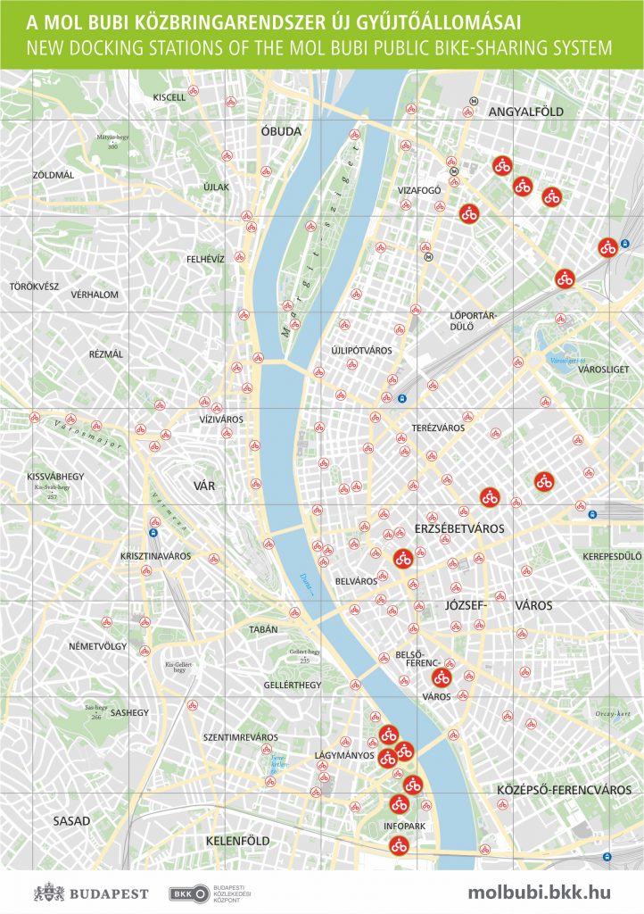 A 16 új MOL Bubi gyűjtőállomást az alábbi helyszínekre telepítette a BKK: