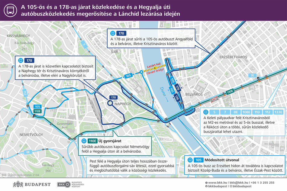 A Lánchíd felújításáról és az azzal járó forgalmi változásokról minden információ elérhető a lanchid.hu oldalon.