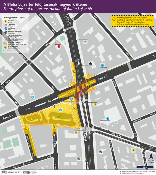 A 4-es és a 6-os villamos a felújítás idején végig közlekedik, a munkák nem érintik a járat Blaha Lujza téri megállóját.