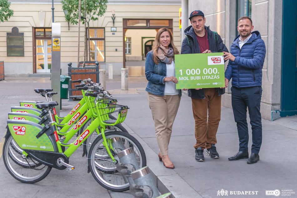 A fővárosban közlekedők igényeit figyelembe véve a BKK ötven új kerékpárral bővítette a MOL Bubi flottáját októberben, de tervek szerint később még ennél is több vadonatúj biciklivel találkozhatnak majd a budapestiek. A flottabővítés nem véletlen: megújulása óta hatalmas népszerűségnek örvend a közbringaszolgáltatás, tavasz óta sorra dönti a rekordokat. Így volt ez októberben is, ebben a hónapban utaztak egymilliomodik alkalommal az almazöld biciklikkel. A szerencsés felhasználót a BKK egy éves MOL Bubi-bérlettel ajándékozta meg, amit Diószegi Ágnes, a BKK Ügyfélkapcsolati és értékesítési vezérigazgató-helyettese, és Borsi Dávid, a társaság kommunikációs vezetője és szóvivője adott át. Nem csak a szerencsés egymilliomodik utazó, hanem az Országos Mentőszolgálat Közép-Magyarország régióban dolgozó Covid-hős mentősei is kaptak MOL Bubi bérletet, összesen 1600 darabot. A BKK és az OMSZ szorosabbra fűzte kapcsolatát annak érdekében, hogy minél hatékonyabban támogathassák egymás munkáját.