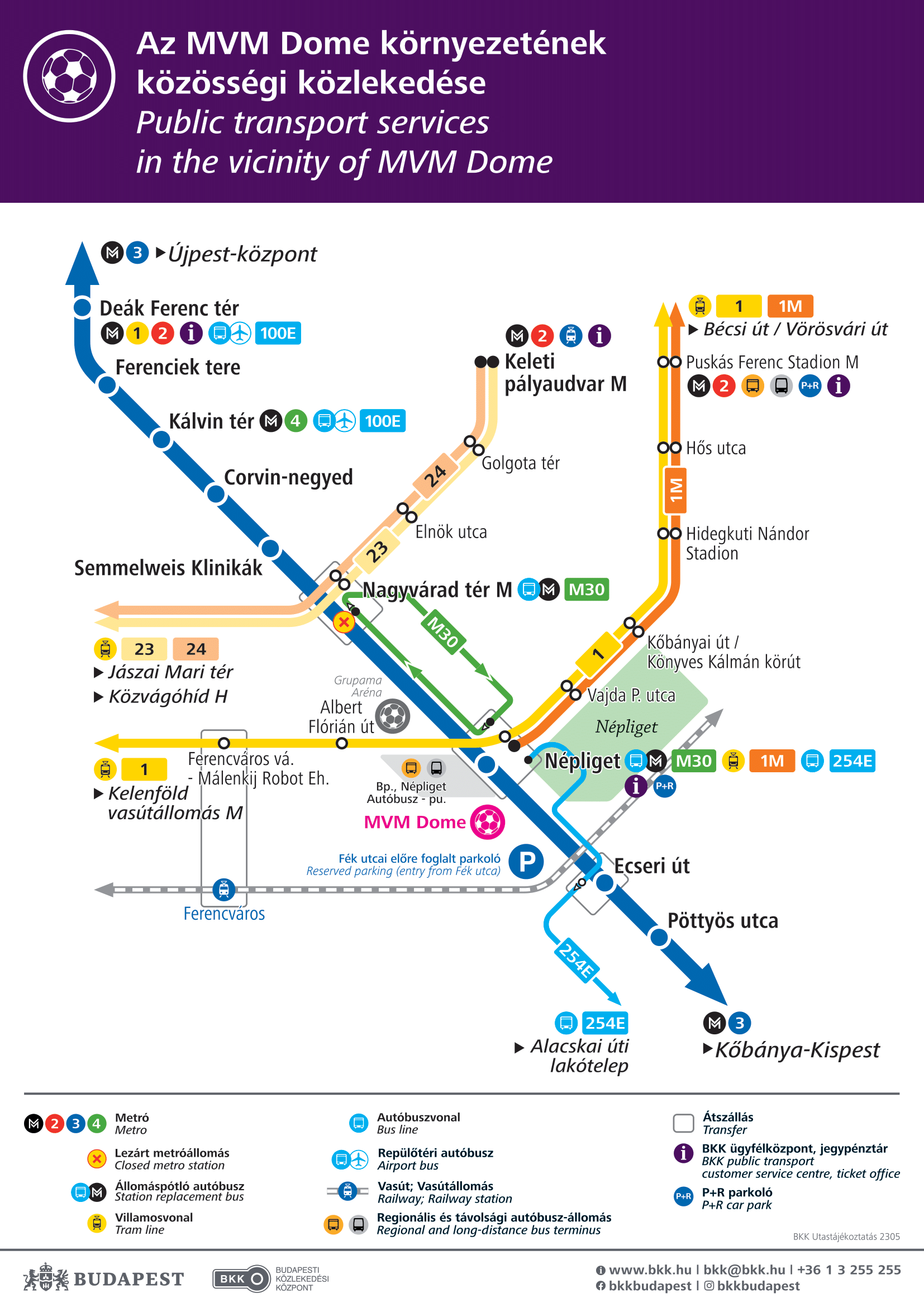 Mivel a MVM Dome környékén korlátozottak a parkolási lehetőségek, ezért a BKK a közösségi közlekedés, különösen az este is Kőbánya-Kispest és Újpest-központ közlekedő M3-as metrót, valamint az 1-es villamos igénybevételét javasolja, amelyek a mérkőzést követően szükség szerint sűrűbben közlekednek.