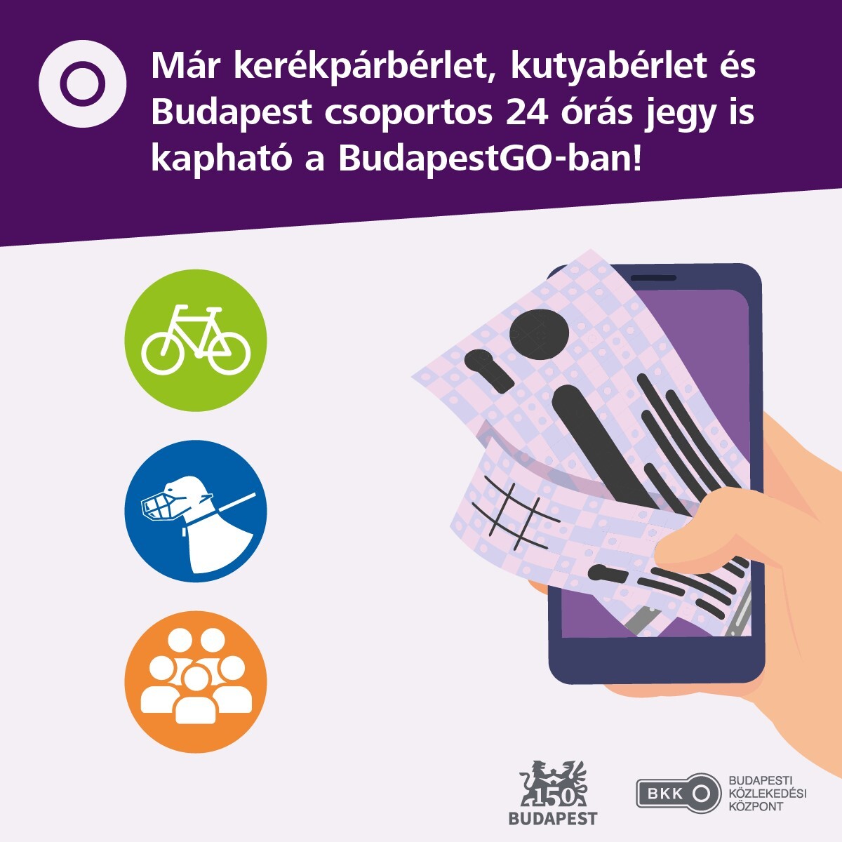Bővül a BudapestGO-val elérhető termékek köre. A Budapesti Közlekedési Központ népszerű applikációjával júliustól a digitális jegyek és bérletek között újdonságként megjelenik a kerékpárosbérlet, a kutyabérlet és a maximum 5 főre érvényes csoportos 24 órás jegy.