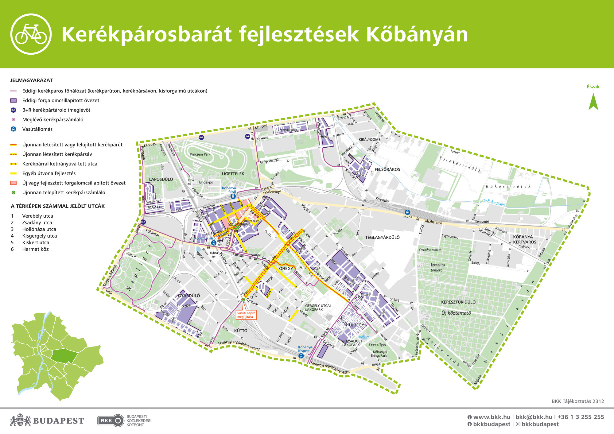• a Korponai utca–Kolozsvári utca–Harmat utca-Kőrösi Csoma Sándor út által határolt területen és az Óhegy park környezetében új forgalomtechnikai kialakítással segíti a kerékpárral közlekedőket;