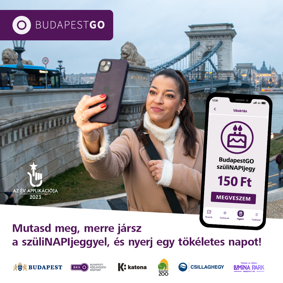 Különleges ajánlattal ünnepli a BudapestGO második születésnapját a Budapesti Közlekedési Központ: február 14-én 150 forintos szüliNAPIjegyet kínál az applikációban, amellyel egész nap korlátlanul lehet utazni a BKK járatain. A kedvezményes jegy 2024. február 12-től elővásárolható a BudapestGO-ban és a többi mobiljegyet árusító alkalmazásban, viszont kizárólag február 14-én 00:00-tól 23:59-ig használható fel. A BudapestGO szüliNAPIjegy Budapest közigazgatási határán belül az 1-99, 101-299, 900-999, M1, M2, M3, M4, H5, H6, H7, H8, H9, D14 vonalakon, a MÁV-START meghatározott vonatokon és a VOLÁNBUSZ kijelölt elővárosi járatain érvényes.