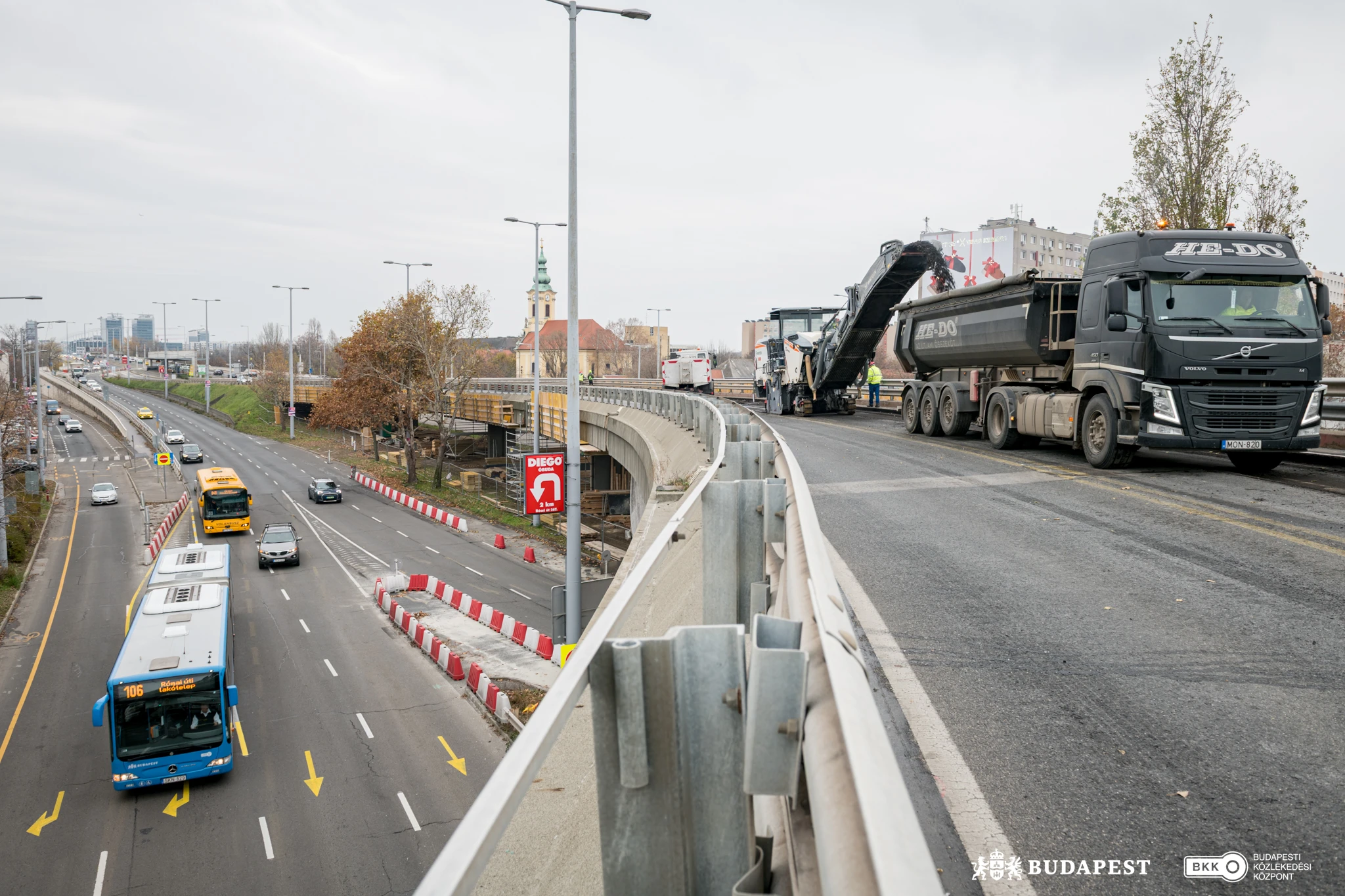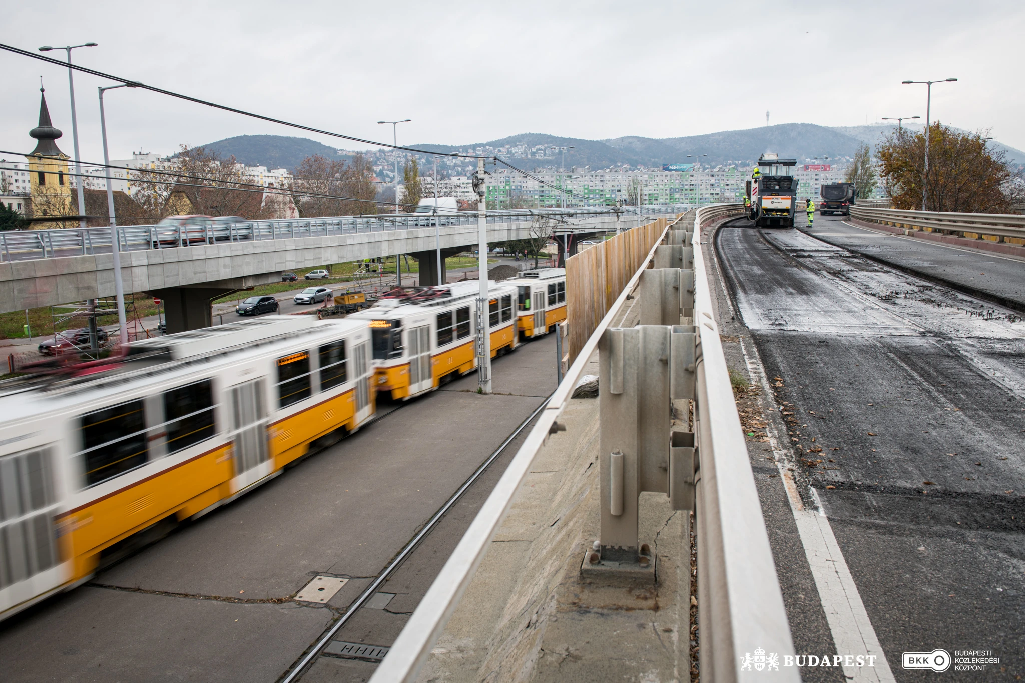 Budapest, 2025. november 24. – Látványos munkavégzéssel lépett második ütemébe a Flórián téri felüljárók felújítása. A lezárt északi hídon november 24-én, hétfő délelőtt munkába lendültek a nagygépek, hogy felmarják az aszfaltot a hídpályán. A bontás után a szakemberek – ugyanúgy, mint tavasszal a déli hídon – részletes állapotfelmérést készítenek a híd pályalemezéről, hogy az eredmények ismeretében a legbiztonságosabb és a legmegfelelőbb műszaki megoldást válasszák. A forgalomkorlátozások miatt a BKK kéri az arra közlekedőket, hogy lehetőleg a sűrített és előnyben részesített közösségi közlekedést vegyék igénybe. Egyúttal azt tanácsolja a gépjárművel közlekedőknek, hogy a felújítás hátralévő ideje alatt más útvonalon, a Flórián teret, illetve Pestről Buda felé az Árpád hidat elkerülve közelítsék meg az úti céljukat.