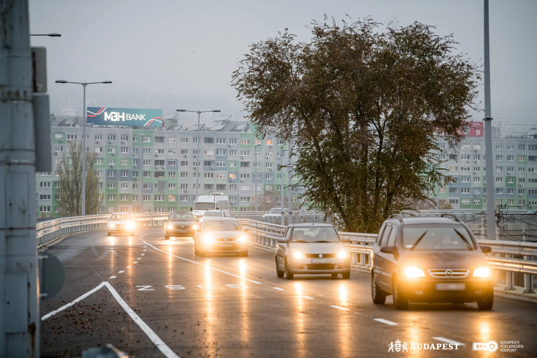 - A megújult déli felüljáró mellett egy sávon lehet egyenesen, a Pacsirtamező utcai visszafordító felé hajtani, a szélső sávban változatlanul autóbuszsáv van kijelölve.