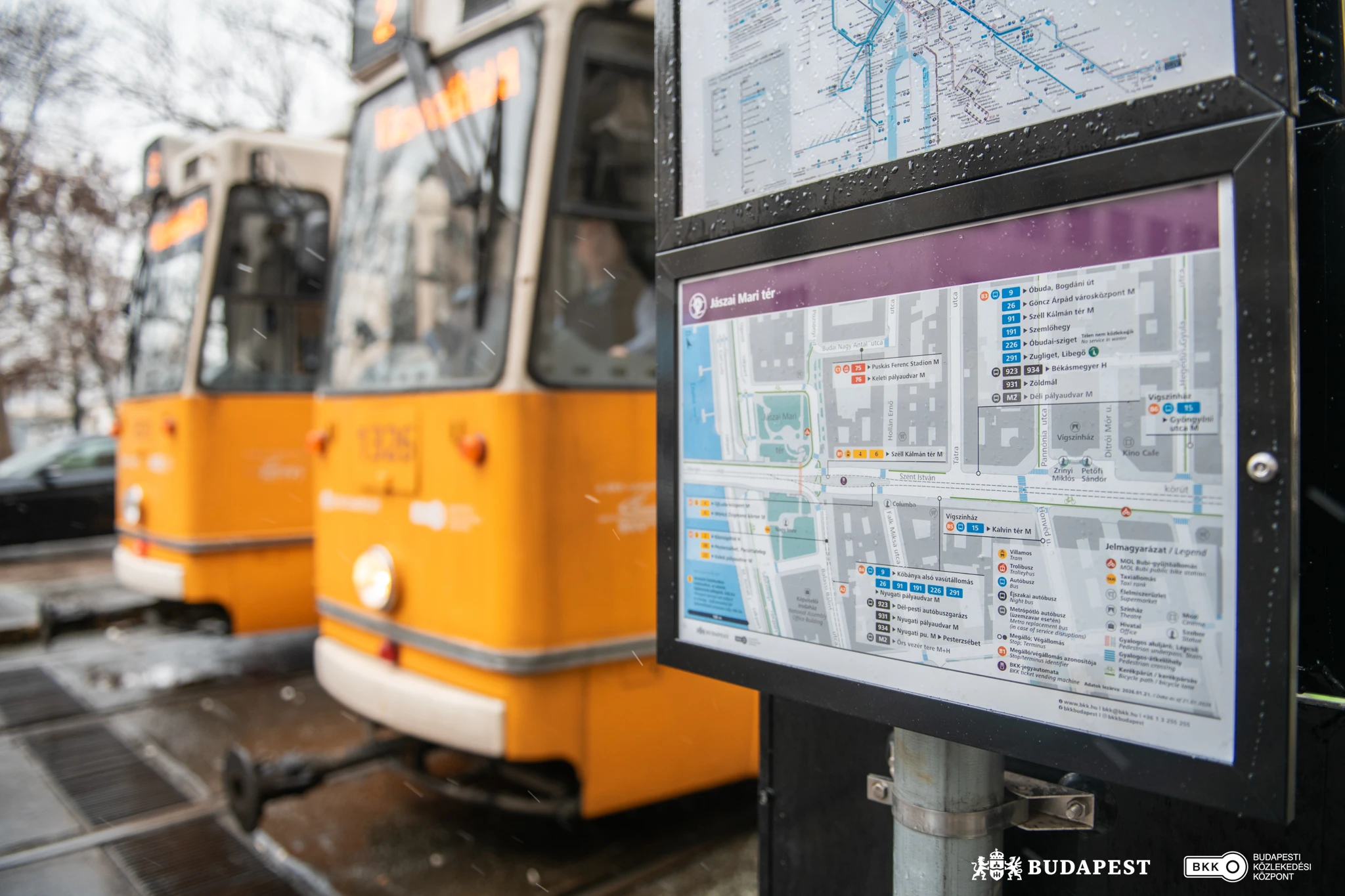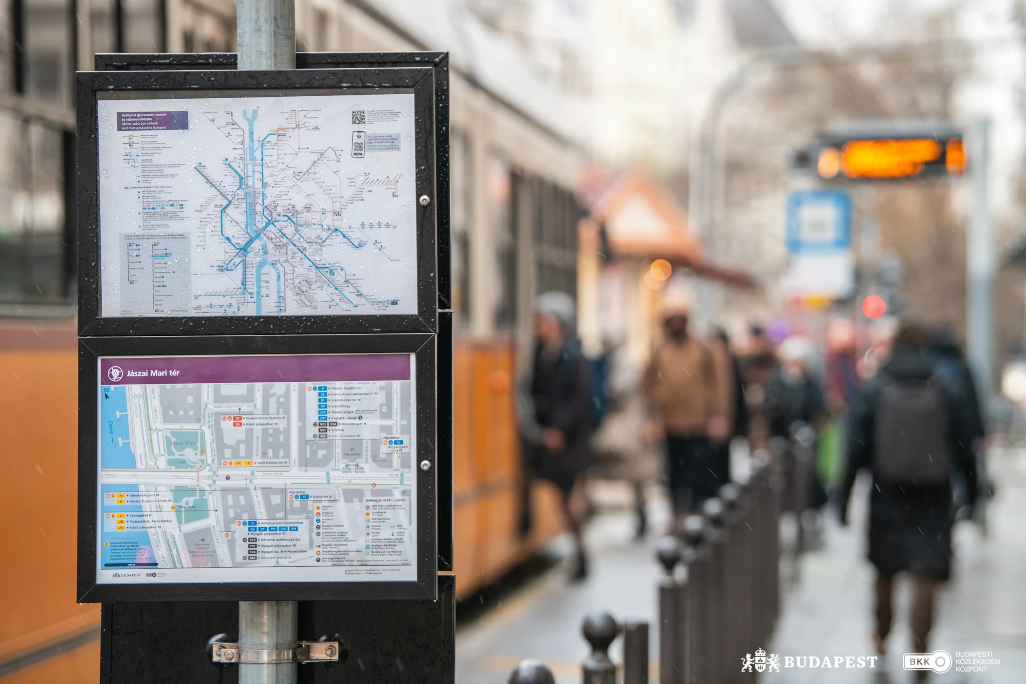 A Jászai Mari tér megállóiban kihelyezett táblák könnyebbé teszik az eligazodást az utasok számára. A projekt a fővárosi közlekedési csomópontok utastájékoztatásának fokozatos megújítását célzó fejlesztéssorozat része.